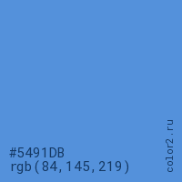 Цвет #5491DB в цветовой модели RGB обозначается тремя октетами (84, 145, 219) в десятичном формате и #5491DB в шестнадцатиричном (hex) формате, которые являются интенсивностью красного 84 (hex 54), интенсивность зелёного 145 (hex 91) и интенсивность синего 219 (hex DB).