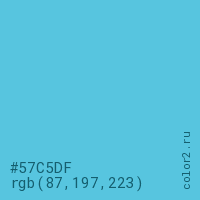 Цвет #57C5DF в цветовой модели RGB обозначается тремя октетами (87, 197, 223) в десятичном формате и #57C5DF в шестнадцатиричном (hex) формате, которые являются интенсивностью красного 87 (hex 57), интенсивность зелёного 197 (hex C5) и интенсивность синего 223 (hex DF).