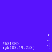 Цвет #5813FD в цветовой модели RGB обозначается тремя октетами (88, 19, 253) в десятичном формате и #5813FD в шестнадцатиричном (hex) формате, которые являются интенсивностью красного 88 (hex 58), интенсивность зелёного 19 (hex 13) и интенсивность синего 253 (hex FD).