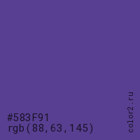 Цвет #583F91 в цветовой модели RGB обозначается тремя октетами (88, 63, 145) в десятичном формате и #583F91 в шестнадцатиричном (hex) формате, которые являются интенсивностью красного 88 (hex 58), интенсивность зелёного 63 (hex 3F) и интенсивность синего 145 (hex 91).