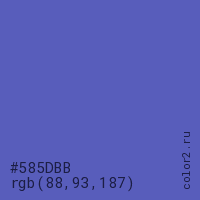Цвет #585DBB в цветовой модели RGB обозначается тремя октетами (88, 93, 187) в десятичном формате и #585DBB в шестнадцатиричном (hex) формате, которые являются интенсивностью красного 88 (hex 58), интенсивность зелёного 93 (hex 5D) и интенсивность синего 187 (hex BB).