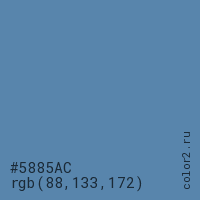 Цвет #5885AC в цветовой модели RGB обозначается тремя октетами (88, 133, 172) в десятичном формате и #5885AC в шестнадцатиричном (hex) формате, которые являются интенсивностью красного 88 (hex 58), интенсивность зелёного 133 (hex 85) и интенсивность синего 172 (hex AC).