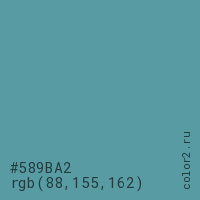Цвет #589BA2 в цветовой модели RGB обозначается тремя октетами (88, 155, 162) в десятичном формате и #589BA2 в шестнадцатиричном (hex) формате, которые являются интенсивностью красного 88 (hex 58), интенсивность зелёного 155 (hex 9B) и интенсивность синего 162 (hex A2).