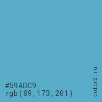 Цвет #59ADC9 в цветовой модели RGB обозначается тремя октетами (89, 173, 201) в десятичном формате и #59ADC9 в шестнадцатиричном (hex) формате, которые являются интенсивностью красного 89 (hex 59), интенсивность зелёного 173 (hex AD) и интенсивность синего 201 (hex C9).