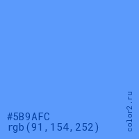 Цвет #5B9AFC в цветовой модели RGB обозначается тремя октетами (91, 154, 252) в десятичном формате и #5B9AFC в шестнадцатиричном (hex) формате, которые являются интенсивностью красного 91 (hex 5B), интенсивность зелёного 154 (hex 9A) и интенсивность синего 252 (hex FC).