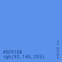 Цвет #5C91EB в цветовой модели RGB обозначается тремя октетами (92, 145, 235) в десятичном формате и #5C91EB в шестнадцатиричном (hex) формате, которые являются интенсивностью красного 92 (hex 5C), интенсивность зелёного 145 (hex 91) и интенсивность синего 235 (hex EB).