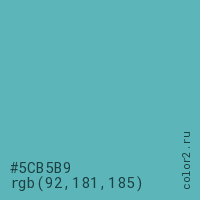 Цвет #5CB5B9 в цветовой модели RGB обозначается тремя октетами (92, 181, 185) в десятичном формате и #5CB5B9 в шестнадцатиричном (hex) формате, которые являются интенсивностью красного 92 (hex 5C), интенсивность зелёного 181 (hex B5) и интенсивность синего 185 (hex B9).