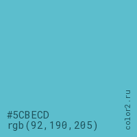 Цвет #5CBECD в цветовой модели RGB обозначается тремя октетами (92, 190, 205) в десятичном формате и #5CBECD в шестнадцатиричном (hex) формате, которые являются интенсивностью красного 92 (hex 5C), интенсивность зелёного 190 (hex BE) и интенсивность синего 205 (hex CD).