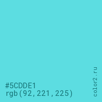 Цвет #5CDDE1 в цветовой модели RGB обозначается тремя октетами (92, 221, 225) в десятичном формате и #5CDDE1 в шестнадцатиричном (hex) формате, которые являются интенсивностью красного 92 (hex 5C), интенсивность зелёного 221 (hex DD) и интенсивность синего 225 (hex E1).