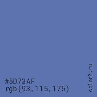 Цвет #5D73AF в цветовой модели RGB обозначается тремя октетами (93, 115, 175) в десятичном формате и #5D73AF в шестнадцатиричном (hex) формате, которые являются интенсивностью красного 93 (hex 5D), интенсивность зелёного 115 (hex 73) и интенсивность синего 175 (hex AF).