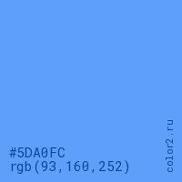 Цвет #5DA0FC в цветовой модели RGB обозначается тремя октетами (93, 160, 252) в десятичном формате и #5DA0FC в шестнадцатиричном (hex) формате, которые являются интенсивностью красного 93 (hex 5D), интенсивность зелёного 160 (hex A0) и интенсивность синего 252 (hex FC).
