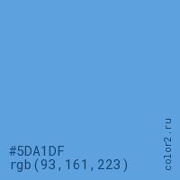 Цвет #5DA1DF в цветовой модели RGB обозначается тремя октетами (93, 161, 223) в десятичном формате и #5DA1DF в шестнадцатиричном (hex) формате, которые являются интенсивностью красного 93 (hex 5D), интенсивность зелёного 161 (hex A1) и интенсивность синего 223 (hex DF).