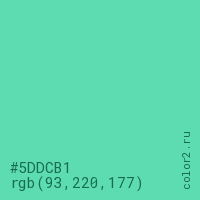 Цвет #5DDCB1 в цветовой модели RGB обозначается тремя октетами (93, 220, 177) в десятичном формате и #5DDCB1 в шестнадцатиричном (hex) формате, которые являются интенсивностью красного 93 (hex 5D), интенсивность зелёного 220 (hex DC) и интенсивность синего 177 (hex B1).