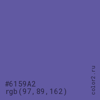Цвет #6159A2 в цветовой модели RGB обозначается тремя октетами (97, 89, 162) в десятичном формате и #6159A2 в шестнадцатиричном (hex) формате, которые являются интенсивностью красного 97 (hex 61), интенсивность зелёного 89 (hex 59) и интенсивность синего 162 (hex A2).
