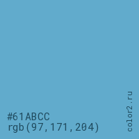 Цвет RGB(97, 171, 204) в процентом отношении количества цвета состоит из 38% красного (red), 67.1% зелёного (green) и 80% синего (blue).