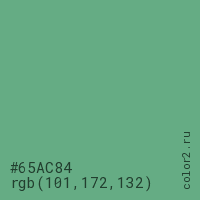 Цвет #65AC84 в цветовой модели RGB обозначается тремя октетами (101, 172, 132) в десятичном формате и #65AC84 в шестнадцатиричном (hex) формате, которые являются интенсивностью красного 101 (hex 65), интенсивность зелёного 172 (hex AC) и интенсивность синего 132 (hex 84).