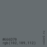 Цвет #666D70 в цветовой модели RGB обозначается тремя октетами (102, 109, 112) в десятичном формате и #666D70 в шестнадцатиричном (hex) формате, которые являются интенсивностью красного 102 (hex 66), интенсивность зелёного 109 (hex 6D) и интенсивность синего 112 (hex 70).