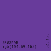 Цвет #683B9B в цветовой модели RGB обозначается тремя октетами (104, 59, 155) в десятичном формате и #683B9B в шестнадцатиричном (hex) формате, которые являются интенсивностью красного 104 (hex 68), интенсивность зелёного 59 (hex 3B) и интенсивность синего 155 (hex 9B).