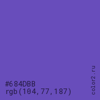 Цвет #684DBB в цветовой модели RGB обозначается тремя октетами (104, 77, 187) в десятичном формате и #684DBB в шестнадцатиричном (hex) формате, которые являются интенсивностью красного 104 (hex 68), интенсивность зелёного 77 (hex 4D) и интенсивность синего 187 (hex BB).