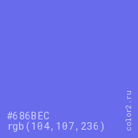 Цвет #686BEC в цветовой модели RGB обозначается тремя октетами (104, 107, 236) в десятичном формате и #686BEC в шестнадцатиричном (hex) формате, которые являются интенсивностью красного 104 (hex 68), интенсивность зелёного 107 (hex 6B) и интенсивность синего 236 (hex EC).