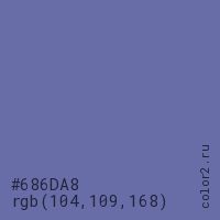 Цвет #686DA8 в цветовой модели RGB обозначается тремя октетами (104, 109, 168) в десятичном формате и #686DA8 в шестнадцатиричном (hex) формате, которые являются интенсивностью красного 104 (hex 68), интенсивность зелёного 109 (hex 6D) и интенсивность синего 168 (hex A8).