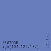 Цвет #687DBB в цветовой модели RGB обозначается тремя октетами (104, 125, 187) в десятичном формате и #687DBB в шестнадцатиричном (hex) формате, которые являются интенсивностью красного 104 (hex 68), интенсивность зелёного 125 (hex 7D) и интенсивность синего 187 (hex BB).