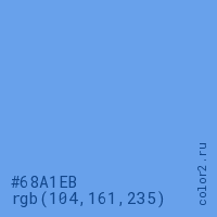 Цвет #68A1EB в цветовой модели RGB обозначается тремя октетами (104, 161, 235) в десятичном формате и #68A1EB в шестнадцатиричном (hex) формате, которые являются интенсивностью красного 104 (hex 68), интенсивность зелёного 161 (hex A1) и интенсивность синего 235 (hex EB).