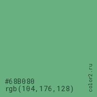 Цвет #68B080 в цветовой модели RGB обозначается тремя октетами (104, 176, 128) в десятичном формате и #68B080 в шестнадцатиричном (hex) формате, которые являются интенсивностью красного 104 (hex 68), интенсивность зелёного 176 (hex B0) и интенсивность синего 128 (hex 80).