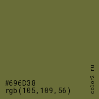 Цвет #696D38 в цветовой модели RGB обозначается тремя октетами (105, 109, 56) в десятичном формате и #696D38 в шестнадцатиричном (hex) формате, которые являются интенсивностью красного 105 (hex 69), интенсивность зелёного 109 (hex 6D) и интенсивность синего 56 (hex 38).