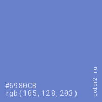 Цвет #6980CB в цветовой модели RGB обозначается тремя октетами (105, 128, 203) в десятичном формате и #6980CB в шестнадцатиричном (hex) формате, которые являются интенсивностью красного 105 (hex 69), интенсивность зелёного 128 (hex 80) и интенсивность синего 203 (hex CB).