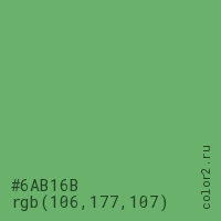 Цвет #6AB16B в цветовой модели RGB обозначается тремя октетами (106, 177, 107) в десятичном формате и #6AB16B в шестнадцатиричном (hex) формате, которые являются интенсивностью красного 106 (hex 6A), интенсивность зелёного 177 (hex B1) и интенсивность синего 107 (hex 6B).