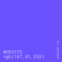 Цвет #6B51FD в цветовой модели RGB обозначается тремя октетами (107, 81, 253) в десятичном формате и #6B51FD в шестнадцатиричном (hex) формате, которые являются интенсивностью красного 107 (hex 6B), интенсивность зелёного 81 (hex 51) и интенсивность синего 253 (hex FD).
