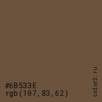 | RGB | rgb(107, 83, 62) |
