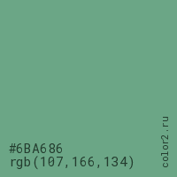 Цвет #6BA686 в цветовой модели RGB обозначается тремя октетами (107, 166, 134) в десятичном формате и #6BA686 в шестнадцатиричном (hex) формате, которые являются интенсивностью красного 107 (hex 6B), интенсивность зелёного 166 (hex A6) и интенсивность синего 134 (hex 86).