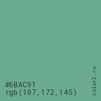 Цвет #6BAC91 в цветовой модели RGB обозначается тремя октетами (107, 172, 145) в десятичном формате и #6BAC91 в шестнадцатиричном (hex) формате, которые являются интенсивностью красного 107 (hex 6B), интенсивность зелёного 172 (hex AC) и интенсивность синего 145 (hex 91).