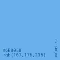 Цвет #6BB0EB в цветовой модели RGB обозначается тремя октетами (107, 176, 235) в десятичном формате и #6BB0EB в шестнадцатиричном (hex) формате, которые являются интенсивностью красного 107 (hex 6B), интенсивность зелёного 176 (hex B0) и интенсивность синего 235 (hex EB).