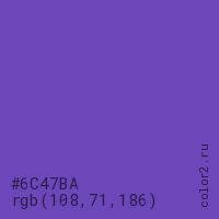 Цвет #6C47BA в цветовой модели RGB обозначается тремя октетами (108, 71, 186) в десятичном формате и #6C47BA в шестнадцатиричном (hex) формате, которые являются интенсивностью красного 108 (hex 6C), интенсивность зелёного 71 (hex 47) и интенсивность синего 186 (hex BA).