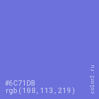 Цвет #6C71DB в цветовой модели RGB обозначается тремя октетами (108, 113, 219) в десятичном формате и #6C71DB в шестнадцатиричном (hex) формате, которые являются интенсивностью красного 108 (hex 6C), интенсивность зелёного 113 (hex 71) и интенсивность синего 219 (hex DB).