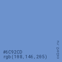 Цвет #6C92CD в цветовой модели RGB обозначается тремя октетами (108, 146, 205) в десятичном формате и #6C92CD в шестнадцатиричном (hex) формате, которые являются интенсивностью красного 108 (hex 6C), интенсивность зелёного 146 (hex 92) и интенсивность синего 205 (hex CD).