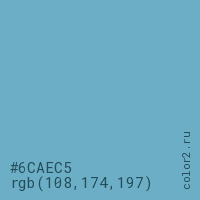 Цвет #6CAEC5 в цветовой модели RGB обозначается тремя октетами (108, 174, 197) в десятичном формате и #6CAEC5 в шестнадцатиричном (hex) формате, которые являются интенсивностью красного 108 (hex 6C), интенсивность зелёного 174 (hex AE) и интенсивность синего 197 (hex C5).