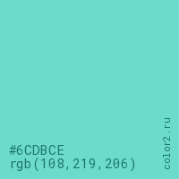 Цвет RGB(108, 219, 206) в процентом отношении количества цвета состоит из 42.4% красного (red), 85.9% зелёного (green) и 80.8% синего (blue).