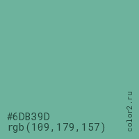 Цвет #6DB39D в цветовой модели RGB обозначается тремя октетами (109, 179, 157) в десятичном формате и #6DB39D в шестнадцатиричном (hex) формате, которые являются интенсивностью красного 109 (hex 6D), интенсивность зелёного 179 (hex B3) и интенсивность синего 157 (hex 9D).