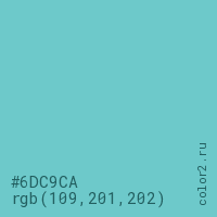 Цвет #6DC9CA в цветовой модели RGB обозначается тремя октетами (109, 201, 202) в десятичном формате и #6DC9CA в шестнадцатиричном (hex) формате, которые являются интенсивностью красного 109 (hex 6D), интенсивность зелёного 201 (hex C9) и интенсивность синего 202 (hex CA).