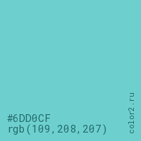 Цвет #6DD0CF в цветовой модели RGB обозначается тремя октетами (109, 208, 207) в десятичном формате и #6DD0CF в шестнадцатиричном (hex) формате, которые являются интенсивностью красного 109 (hex 6D), интенсивность зелёного 208 (hex D0) и интенсивность синего 207 (hex CF).