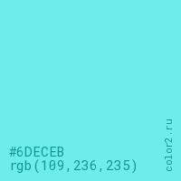 Цвет #6DECEB в цветовой модели RGB обозначается тремя октетами (109, 236, 235) в десятичном формате и #6DECEB в шестнадцатиричном (hex) формате, которые являются интенсивностью красного 109 (hex 6D), интенсивность зелёного 236 (hex EC) и интенсивность синего 235 (hex EB).
