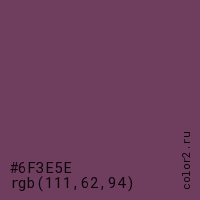 | RGB | rgb(111, 62, 94) |