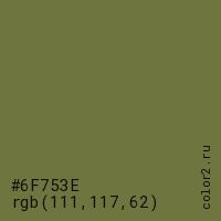 | RGB | rgb(111, 117, 62) |