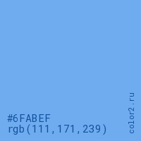 Цвет #6FABEF в цветовой модели RGB обозначается тремя октетами (111, 171, 239) в десятичном формате и #6FABEF в шестнадцатиричном (hex) формате, которые являются интенсивностью красного 111 (hex 6F), интенсивность зелёного 171 (hex AB) и интенсивность синего 239 (hex EF).