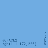 Цвет #6FACE2 в цветовой модели RGB обозначается тремя октетами (111, 172, 226) в десятичном формате и #6FACE2 в шестнадцатиричном (hex) формате, которые являются интенсивностью красного 111 (hex 6F), интенсивность зелёного 172 (hex AC) и интенсивность синего 226 (hex E2).