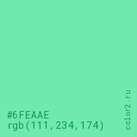 Цвет #6FEAAE в цветовой модели RGB обозначается тремя октетами (111, 234, 174) в десятичном формате и #6FEAAE в шестнадцатиричном (hex) формате, которые являются интенсивностью красного 111 (hex 6F), интенсивность зелёного 234 (hex EA) и интенсивность синего 174 (hex AE).